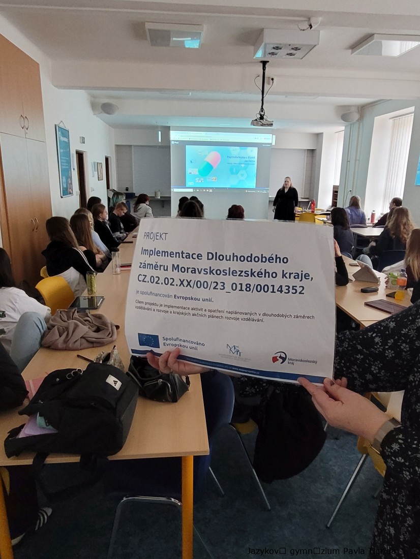 Setkání s odbornicí z praxe: Velký přínos měla také přednáška psychiatričky MUDr. Marie Cvečkové, která studenty seznámila s různými druhy psychiatrických farmak, jejich účinky, a především riziky spojenými s jejich nadměrným užíváním nebo podužíváním. Přednáška otevřeně a srozumitelně přispěla k prevenci závislosti, sebemedikace a k lepšímu pochopení duševních onemocnění.