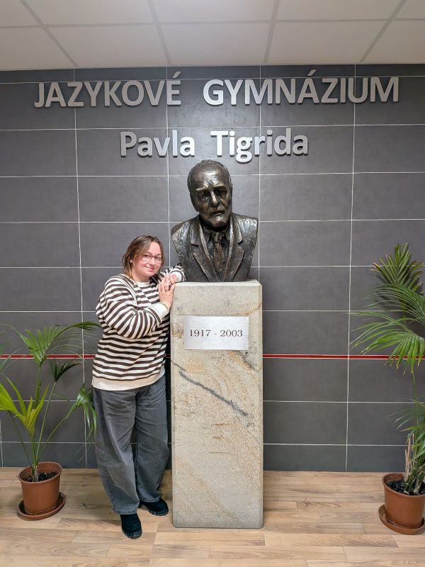Od října 2025 jste jistě na chodbách Jazykového gymnázia Pavla Tigrida zahlédli novou francouzsky mluvící osobu. Je to Romane, naše asistentka pro výuku francouzštiny! Je v České republice v rámci 10měsíčního programu, který organizuje France Education International ve spolupráci s Francouzským institutem v Praze, Ministerstvem školství, mládeže a tělovýchovy a Moravskoslezským krajem. Děkujeme všem těmto významným partnerům, že si pro tento krásný projekt vybrali právě nás. Romane je na gymnáziu přítomna v úterý a ve středu a účastní se hodin francouzštiny a hodin vedených ve francouzštině společně s českými učiteli. Při této příležitosti jsme jí položili několik otázek.