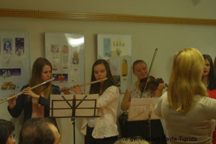 V úterý 20. prosince 2016 jsme se všichni měli možnost zastavit v předvánočním spěchu a vychutnat si sváteční atmosféru na vánočním koncertě žáků jazykového gymnázia v hudebním oddělení Knihovny města Ostrava. Letos se poprvé koncert konal mimo budovu gymnázia, a tak žáky přišli povzbudit také jejich rodiče či přátelé. V průběhu pozdního odpoledne zazněla hudba vážná, populární a samozřejmě i vánoční, sborově či sólově vystoupili žáci prvního a druhého ročníku gymnázia, např. Jana Burdová (housle), Kateřina Pavlusová, Natálie Skowronková (zpěv), Jan Miták, Zuzana Landová a Adéla Vondroušová (saxofon), Sebastian Sedlár, Daniel Košťál a Klára Halodová (klavír) a další. V závěru celého koncertu si všichni posluchači v sále zazpívali s žáky koledu Narodil se Kristus Pán a za jejich vystoupení je odměnili potleskem.